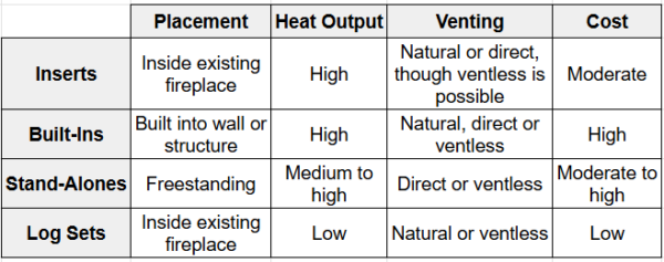 There are four primary types of gas fireplaces, each with its own advantages and disadvantages.